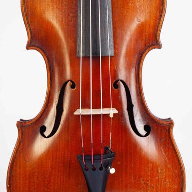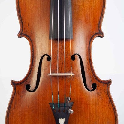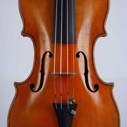Du byder på en fantastisk 4/4 violin, mærket Costantinus Celanius emidii frater vulgo il turco ascoli in piceno fecit an. 1947. Instrumentet er klar til spil med to små reparerede sprækker til højre og venstre ved halen. Violinens top består af fremragende lige kornet gran og en ryg i ét stykke af blødt flammeret ahorn med matchede sider og halsknogle. Purflingen er udført professionelt og kanterne er mesterligt udførte. Den originale olie lak har en gylden ravfarve med enkelte rip og slid. Den samlede længde på violineren er 590 mm og ryggen 360 mm. Bredden af øverste delmål: 172 mm; midter delmål: 117 mm; nederste delmål: 207 mm. Stor størrelse.Lydden af dette instrument har en charmerende karakter, rig, varm, sød og smukke