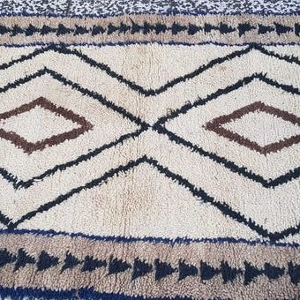 Oprindelsesland Marokko; Berber-model; håndvævet tæppe af uld på bomuld, 144 cm × 98 cm, fra slutningen af det 20. århundrede, i meget god stand og professionelt renset. Klik på den blå "gå til varen" knap, for at købe eller byde på denne vare. Den samlede pris vil blive vist inden du afgiver dit bud.