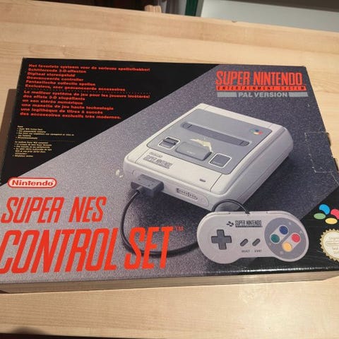 Jeg sælger min Super Nintendo-konsol (PAL-version), model med "Control Set", leveret med sin originale æske og det kult-klassiske spil Street Fighter II Turbo.