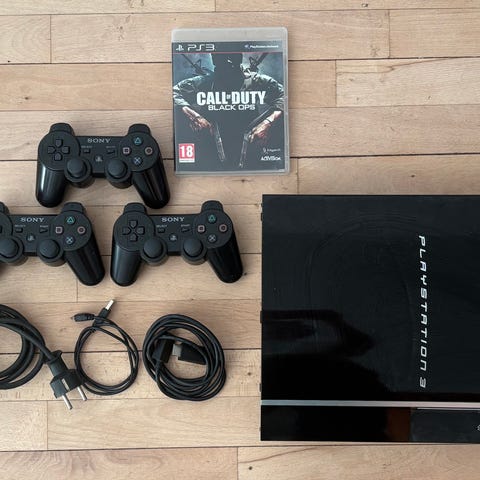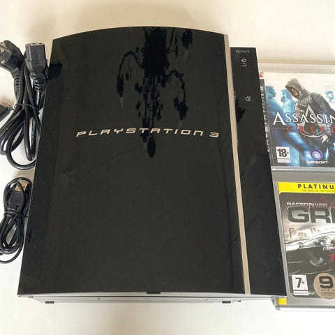 Sony PlayStation 3 CECHL00 i pianoblack, brugt, NTSC‑J, fremstillet i Japan, bundle med DualShock 3, to Metal Gear Solid-spil (The Phantom Pain og Metal Gear Rising), HDMI‑kabel, AV-kabel, strømforsyning og USB-ladekabel, fuldt funktionel. Klik på den blå "gå til varen" knap, for at købe eller byde på denne vare. Den samlede pris vil blive vist inden du afgiver dit bud.