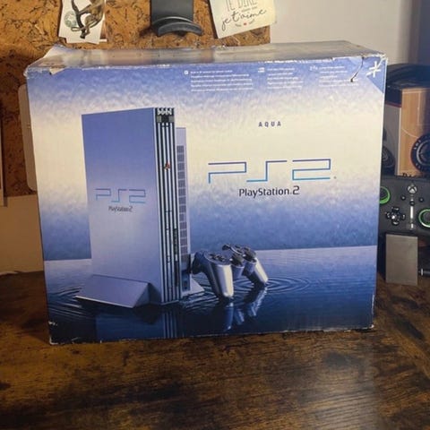 Consola Sony PlayStation 2 Slim (PS2), præsenteret som ny og fuldstændig fabriksforseglet (factory sealed), nogensinde åbnet eller brugt.