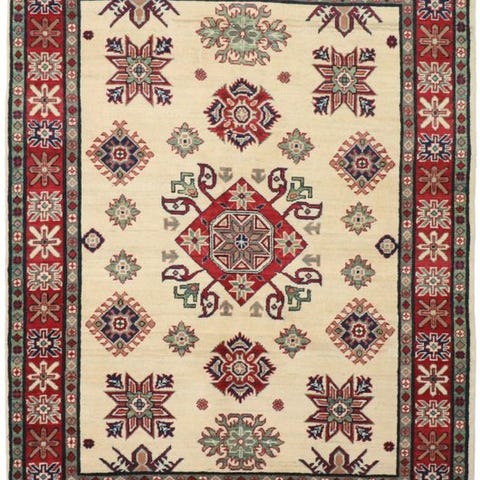 Kazak-tepper fra Pakistan er håndknyttede tæpper, der oprindeligt blev inspireret af de nomadiske stammer i Kaukasus. De kendetegnes ved deres stærke farver, geometriske mønstre og traditionelle symbolik. Typiske farver er rødt, blåt og beige, som opnås ved plantebaserede farvestoffer. Tæpperne er lavet af høj kvalitet uld, hvilket giver dem en robust og holdbar struktur. Kazak-tepper er populære både for deres æstetiske skønhed og for deres holdbarhed.