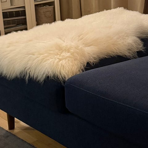 Lammeskindssæde / lammeskindspude / sædehynde i 100% lammeskind fra Warm and comfy Nordic living.