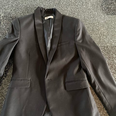 Elegant og tidløst design – perfekt til både festlige lejligheder og mere formelle begivenheder. Sættet fremstår velholdt og i god kvalitet med flot pasform. Jakke + bukser, brugt et par timer.