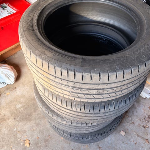Sommerdæk i ok stand. Skiftet tim helårsdæk. Prisen er for alle 4 og de sælges kun samlet.