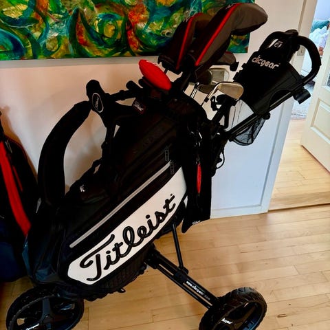 Golfvognen fra 2024 sælges. Golfvognen er i næste ny stand, kun brugt 1 sæson. Den kan betjenes med fjernbetjening eller fra håndtaget. Batteriet kan holde til mindst 18 huller.