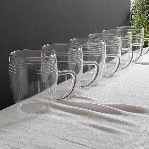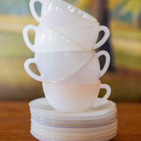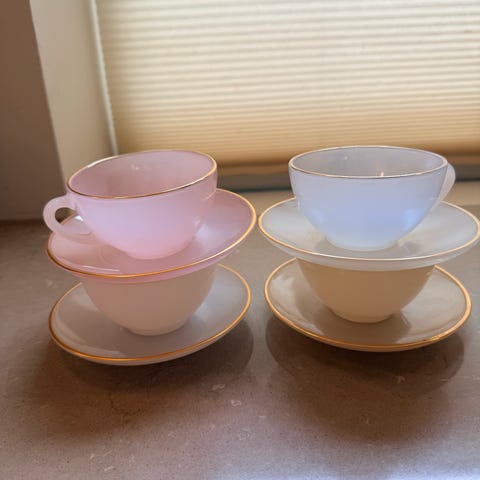 Glaskopper i Pastelfarver Firna Indonesia - Vintage kaffekopper med underkopper