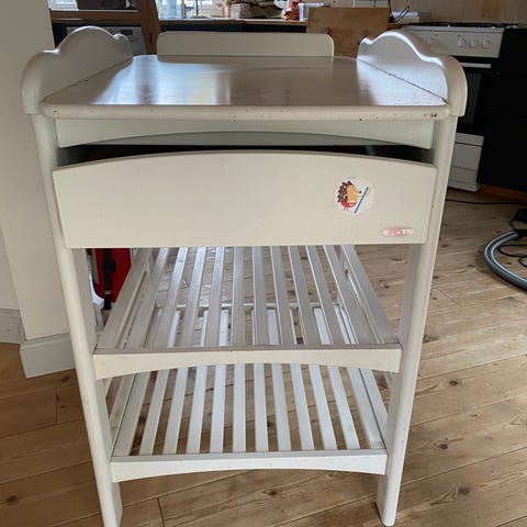 Puslekommoden er brugt til 2 børn derfor har det også lidt brugsspor. Men er ellers i super fin stand.