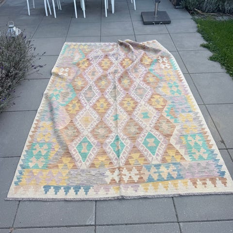 Stor lækkert farverigt kelim tæppe.