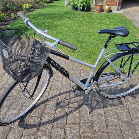 Kildemoes City hybridcykel til kvinde med 28" hjul og stelstørrelse 51cm. Cyklen har lav indstigning og er egnet til by- og hverdagskørsel. Udstyret med kurv foran, bagagebærer, kædeskærm og navgear (Sram 7 gear). Fodbremse bagtil og håndbremse foran. Der er nye batteri lygter på. Godkendt lås med 1 nøgle 🔑 Alt virker.