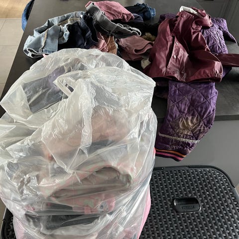2-3 par bukser med lidt slidtage er også lagt i posen hvis de kan bruges som ekstra.