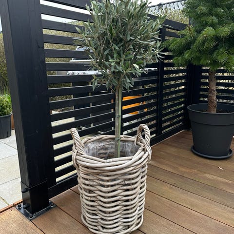 Oliventræ med kurv. Træet er ca 175 cm og 8 cm stamme. Fast pris
