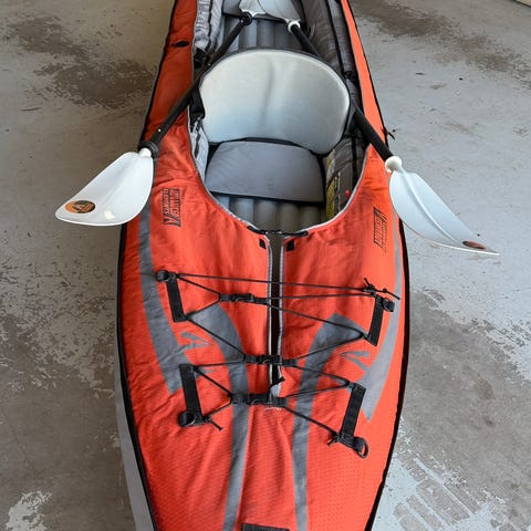 Oppustelig kajak fra black diamond. Der er padler med i æsken. max 160 kg og 2 personer. Kajakken har aldrig været ude af æsken og er som ny. Æsken er lidt hærvet af opbevaringen.