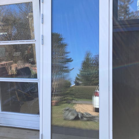 Unik Funkis terrassedør i hvid. Døren måler ca. 95 x 211,5 cm ifølge mærkaten på karmen. Terrassedøren har glasfelt i fuld højde og allu greb. Velegnet som udgang til terrasse, have eller altan, hvor der ønskes et stort glasparti med lysindfald. Åbner venstre ud. Allu bundstykke. Termorude med 3 lag og varmekant.
