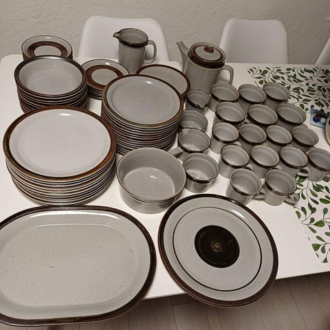 Rörstrand Annika stel med tallerkener og kopper stentøj brun hvid