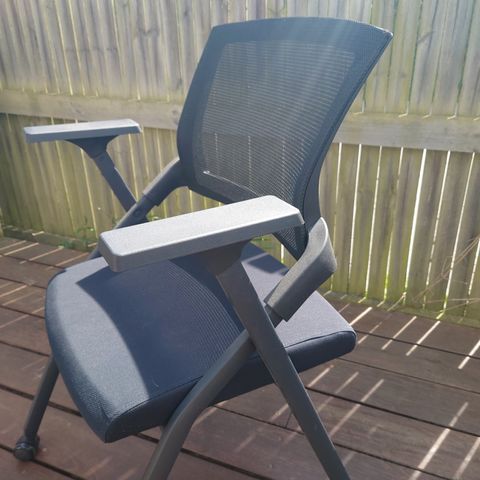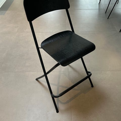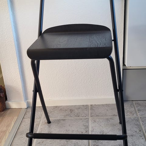 Sammenklappelig stol i sort med sæde og ryg i træ og stel i metal. Stolen kan foldes sammen for nem opbevaring og er egnet som ekstra siddeplads i hjemmet, på kontoret eller til arrangementer.
