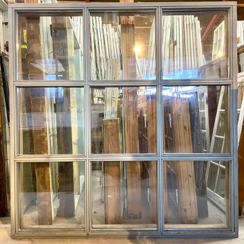 Trævinduer med glas i brun ramme. Vinduerne fremstår som klassiske dannebrog-/rammevinduer med både klart og delvist matteret glas på nogle af felterne. Egnede til udskiftning i hus, udhus eller andre bygninger, hvor der ønskes vinduer med træramme i brun farve. Flere vinduesfelter og størrelser fremgår af billederne.