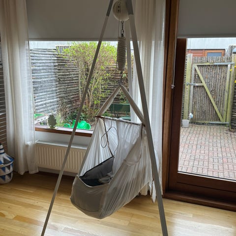 Samlet slyngevuggepakke med Moonboon Connect motor (kan styres via app) & Natures Sway Slyngevugge inkl. tilbehør. Natures sway giver bedre plads til baby i forhold til diverse andre slyngevuggemærker.
