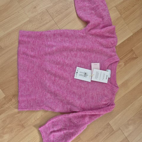 Lækker blød striktrøje fra Nümph i bomuld, alpaca, polyamid, uld og akryl. Den er størrelse small og måler 57 cm fra side til side under ærmegab og 63 cm i længden foran - 71 cm i længden bagpå.
