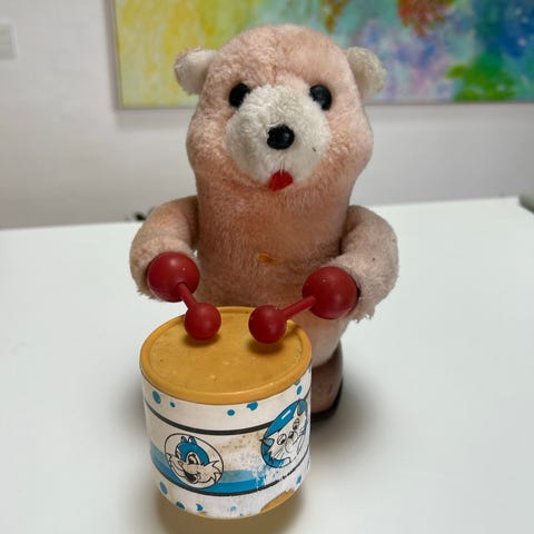 Legetøj, Antik / Vintage børnetromme i metal, Der er her tale om en unik vintage / antik børnetromme med en flot patinering der giver den det helt rigtige udtryk.