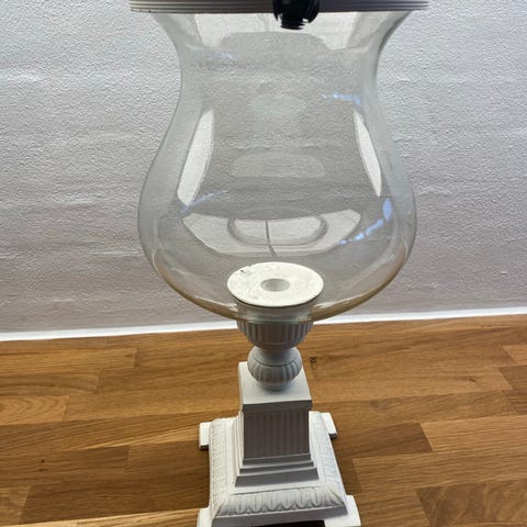 Høj lysestage i krakkeleret glas fra Lene Bjerre med små glassten langs kanterne. 100% intakt. Brugt meget lidt. Krakkeleringen i glasset er fra fabrikkens side.