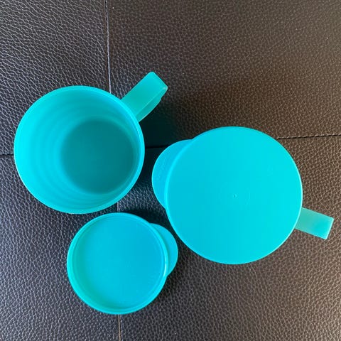 krus med eller uden drikketud og låg, 5 dl. 16 cm. høj, Tupperware, velegnet til både børn og ældre eller brug dem til opbevaring, fri fragt ved køb over kr. 500,00, samlet pris kr. 40,00 eller pr. stk.