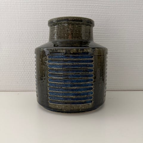 Helle Mardahl, bonbonniere, str MEDI. Salvie grøn og brun. H 23 cm.