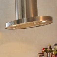 Rustfri stål, frithængende med betjeningsknapper på fronten og halogenspot i midten. Motor inkluderet og fungerer.