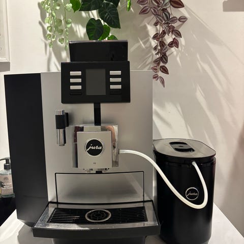 Den laver mange forskellige kaffe og mælkedrikke, endvidere har maskinen lige fået lavet en teknikkerrens så den leveres gennemgået og testet.
