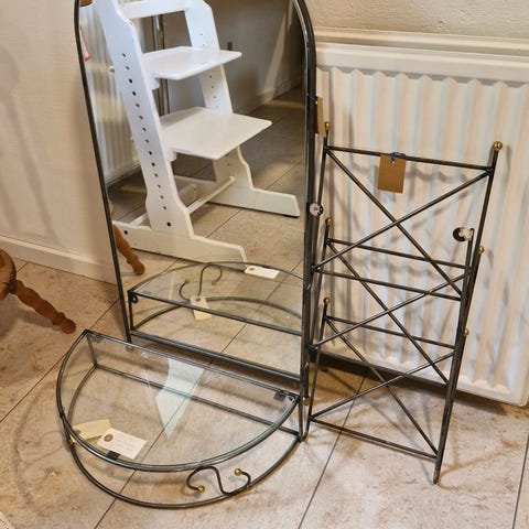 Sæt vægkonsoller i dekorativt støbejern i brunlig farve. Konsollerne har et klassisk, ornamenteret mønster med buer og krummelurer. Velegnet som bærende beslag til hylder / glasplader både inde og ude. Monteres på væg med skruer gennem de integrerede skruehuller i monteringsfladen. De er oprindeligt fremstillet til i gamle dage, at bære toiletsisterner