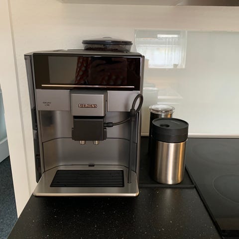 Siemens EQ.6 Plus s300 espressomaskine. Fuldt automatisk espressomaskine med integreret kværn og frontbetjent display med valg af forskellige kaffedrikke. Har været brugt i 2 år, kører super fint og afkalket regelmæssigt. Sælges da ny model er købt.