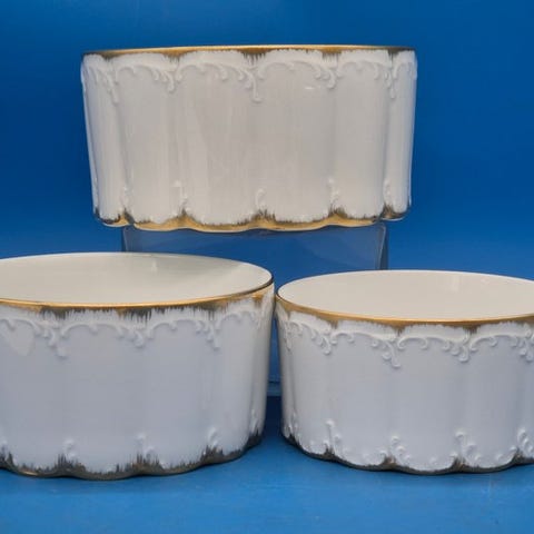 Åkjær creme Bing & Grøndahl ovalt fad porcelæn hvid med guldkant