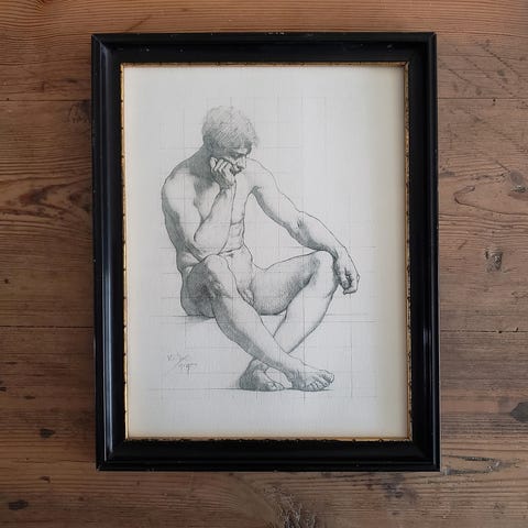 Særdeles skønt signeret maleri - kultegning af smuk nøgen kvinde