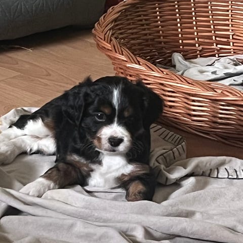 Han er 15 uger og en super sød lille dreng. Han er ikke helt renlig endnu men det arbejdes der på.