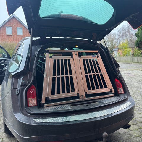 Rummeligt bur med en bredde på 97 cm. som er egnet til dig som har en større hund, eller 2 hunde som kan være i samme rum.