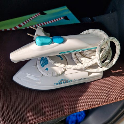 Tilbehør, Mondilec, Rejsestrygejern. 120 volt 400W, 240volt 800 W. Håndtag aftagelig (se billede). Vægt ca.700g. Kr 30,-.