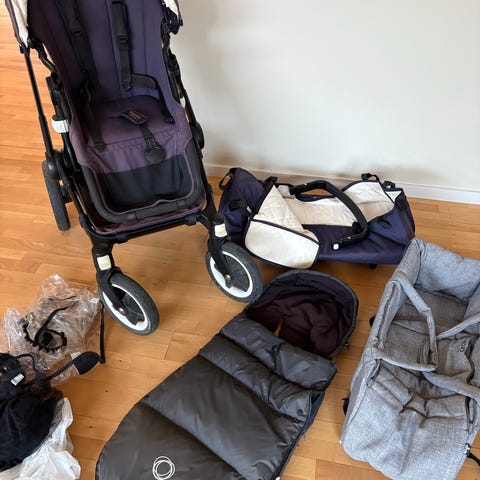 Hvis det ønskes, har vi også Bugaboo sovepose og Bugaboo rejsetaske (til transport af kombivognen på flyveture) til salg.