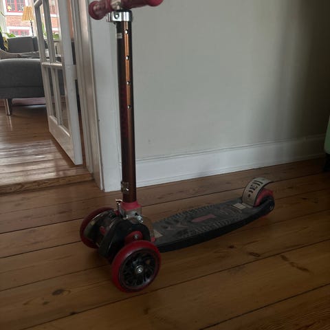 Bright pink Micro Maxi foldable LED 3 wheel scooter.