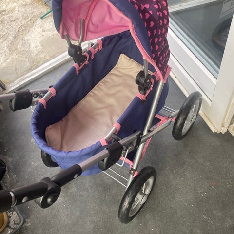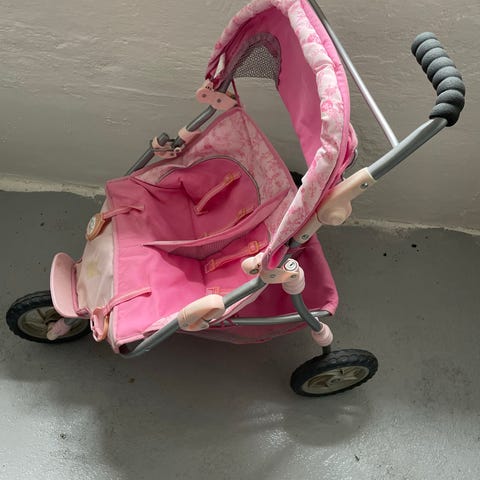 Dobbelt klap/barnevogn med to dukker samt tilbehør