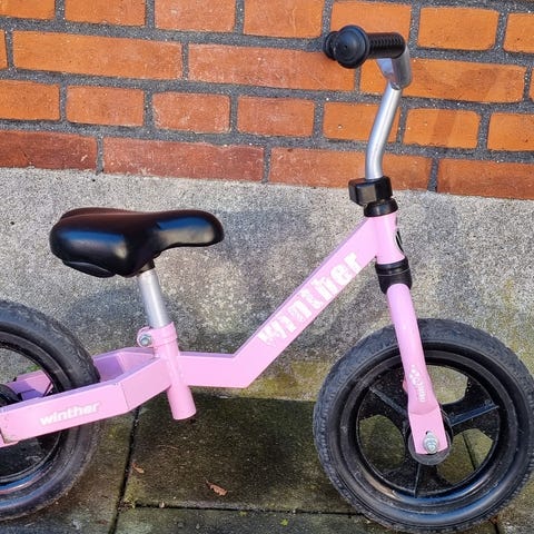 God begynder løbecykel med lavt tyngdepunkt og punkterfrie dæk. Skal have lidt olie, men virker fint.