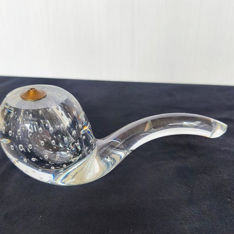Gammel Holmegaard glasbeholder, bobbel med stilk til selvvanding af indendørs planter. Højde: 29 cm Diameter 9 cm.