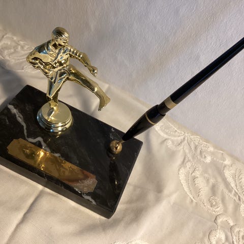 Smuk gammelt marmor sæt som er blevet brugt til brevpresser , fyldepen og blæk , blækhuset er dog ikke brugt.