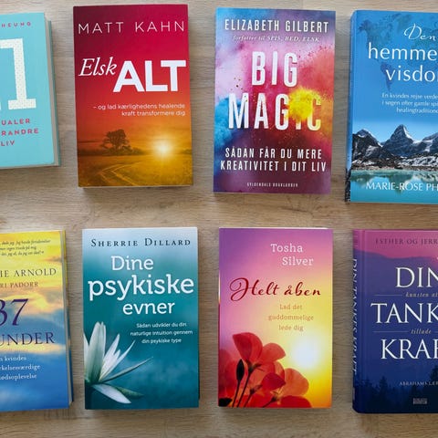 Samling af spirituelle bøger på engelsk. Blandt titlerne er blandt andet "Llewellyn's 2019 Magical Almanac – Practical Magic for Everyday Living" og "Easy Journey to Other Planets" af A.C. Bhaktivedanta Swami Prabhupada. Bøgerne omhandler emner som hverdagsmagi, åndelig udvikling, mystik og rejser på det åndelige plan. Velegnet til læsere med interesse for spiritualitet, esoterik og personlig indsigt.