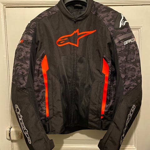 Alpinestars hættetrøje i størrelse XL. Trøjen er grå med gennemgående lynlås foran og hætte med snøre. Den har Alpinestars-logo og tryk på brystet samt mindre logoer på ærmerne. Indersiden har struktureret for, og der er lynlåslukning foran. Velegnet som casual overtøj eller til brug over motorcykelbeklædning, herunder Tech-Air system, som angivet med mærkningen "Tech-Air Ready". Hætte kan tages af og der er beskyttelse med fleksible skum i albuer og skuldre.