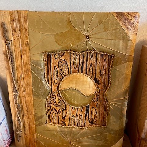 Unikt håndlavet værk af træ og forskellige materialer