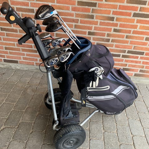 Sælger komplet golfpakke med både MGI Zip X1 elgolfvogn og Cleveland jern med fiberstænger