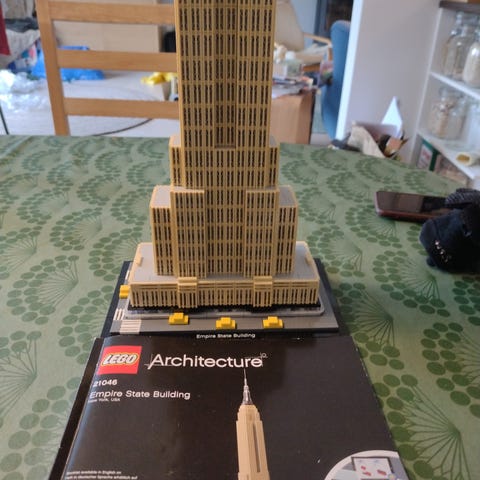 LEGO Architecture Empire State Building. Sættet forestiller en høj bygning opført på en sort baseplade.