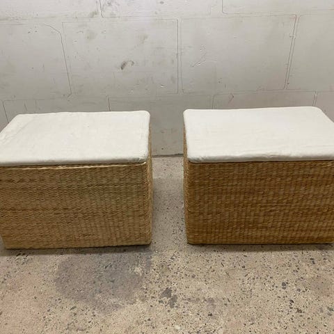 2 puf med ko-skind. Sort og hvide. Ægte skind. Afhentes i Lystrup