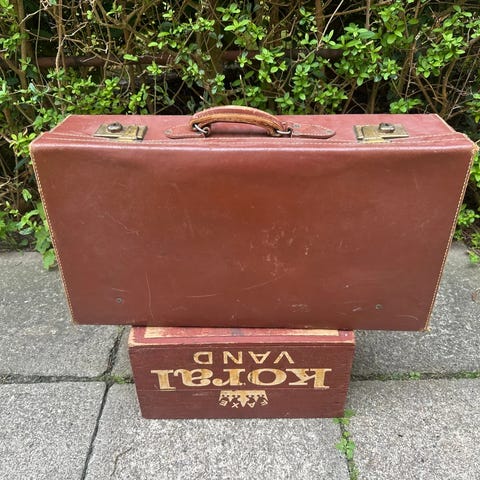 Retro læder kuffert, cognac farvet