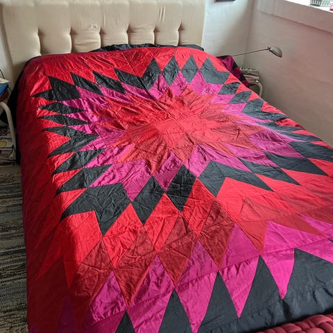 Sengetæppe/plaid, Håndsyet, hjemmelavet, Rigtig flot hjemmelavet håndsyet sengetæppe/plaid i patchwork fra 60'erne/70'erne. Tæppet fejler intet. Man kan ikke se hele tæppet på billederne.